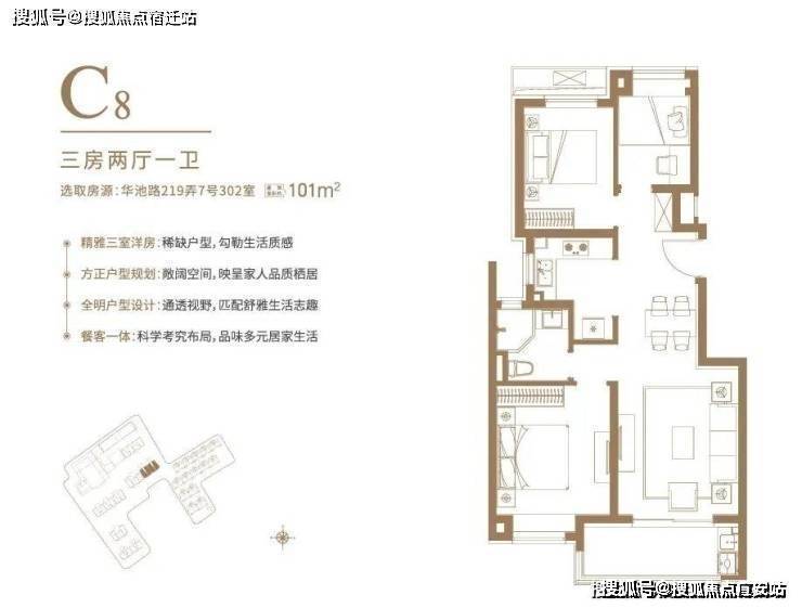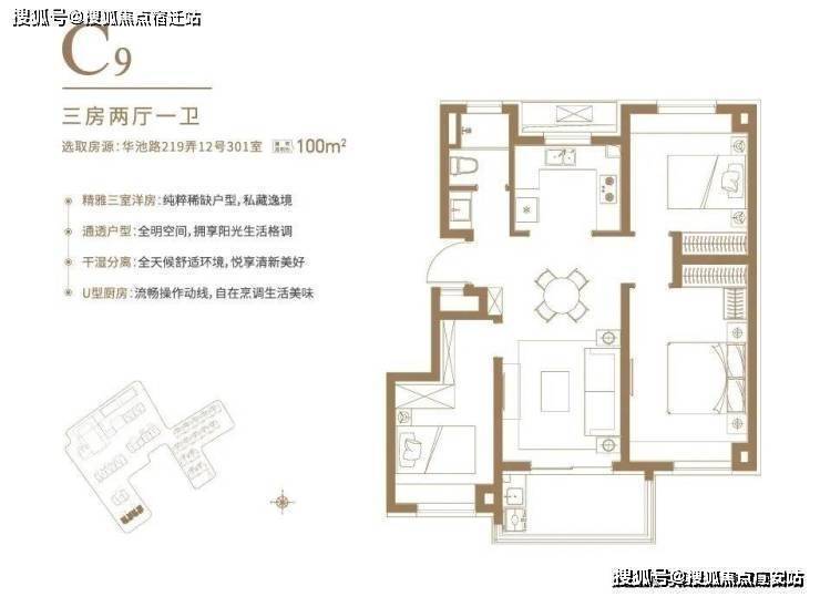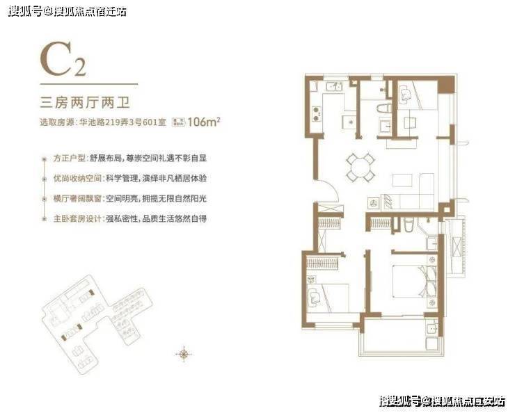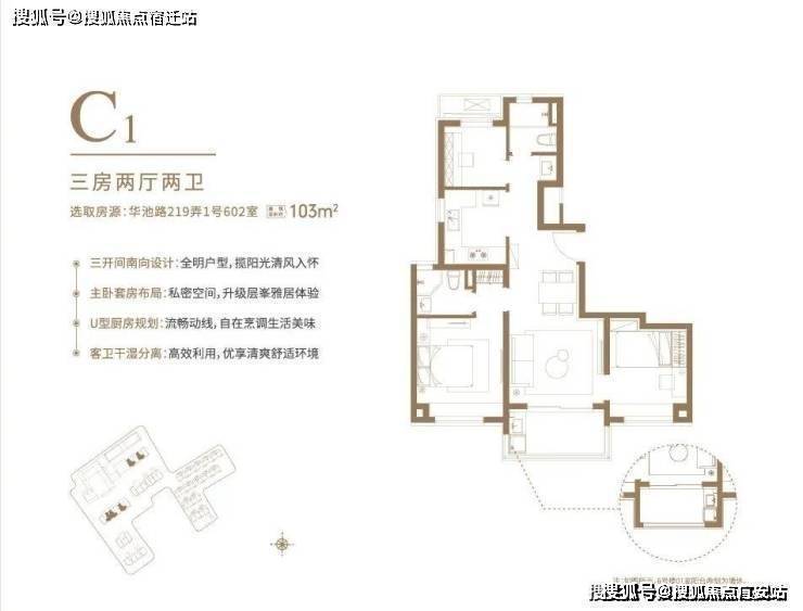 户型设计灵动,项目建面约97-106㎡臻谧洋房,清一色100平左右户型,均价约10.4万/平,无需积分,可直接认购。