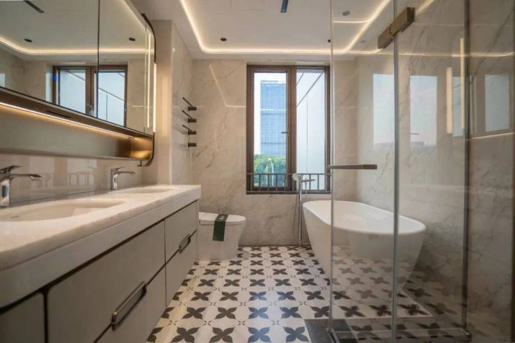 室内精装大量使用石材,除了大门、公区、会所等区域,室内空间同样精心运用了皇家白玉、劳力士灰、安第斯雪景、希腊木纹等高端石材,其独特纹理与温润质感,为空间注入了自然优雅的格调。在大型设备方面,大金中央空调、菲斯曼地暖、霍尼韦尔新风系统等国际品牌产品,彰显了不凡的品质。厨房配置了方太油烟机、燃气灶,以及博世蒸烤一体机、洗碗机、冰箱等高端电器。卫生间则选用了杜拉维特盥洗盆、马桶、浴缸,搭配汉斯格雅龙头、淋浴花洒,在同价位项目中实属罕见。