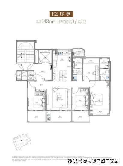 E2约143㎡南厅户型实得率亦达到惊人的92%!该户型格局适合多代同堂或多孩家庭,可兼顾不同年龄段成员的居住需求,均好性强。