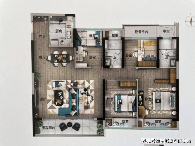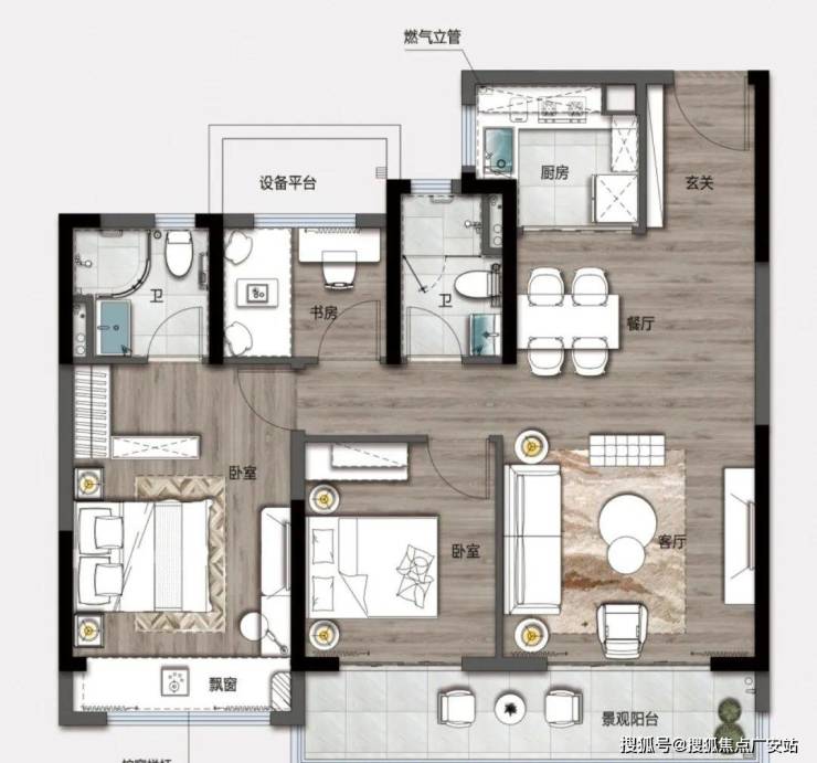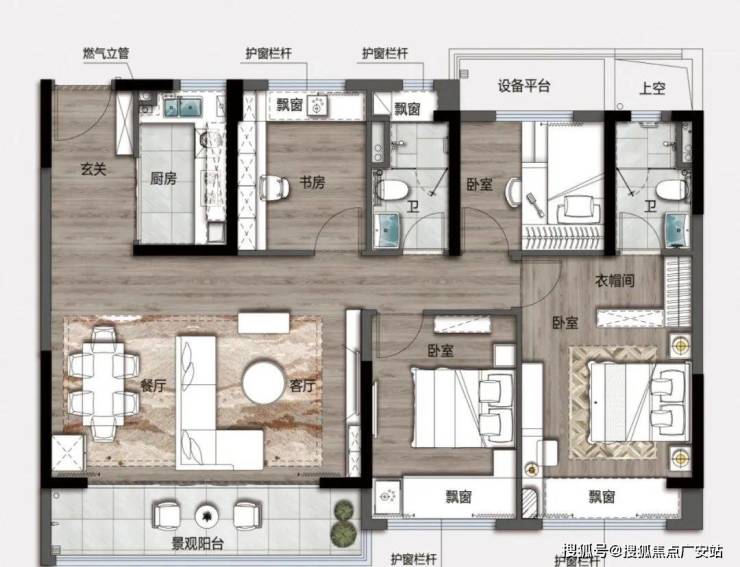 主卧配备独立卫浴、观景飘窗,私享悠静时光