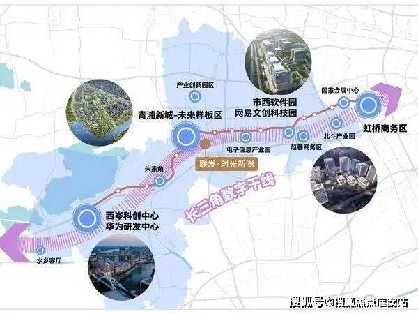 以上海青浦为起点的"长三角数字干线",沿G50高速构建万亿级数字产业生态,涵盖西岑科创中心、市西软件信息园、虹桥北斗产业园、张江科学城等。