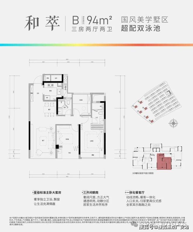 规划6幢高层,国风美学流动建筑感官,局部香槟色铝板、线色铝板和大面积玻璃等高品质材质,辅以仿石涂料,焕发出崭新的时代审美和新机。