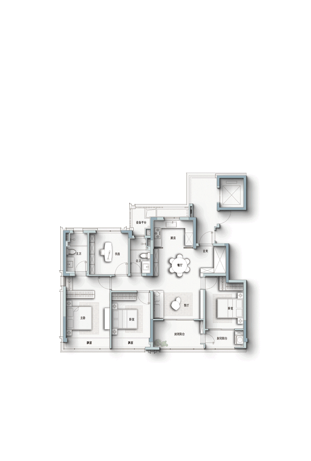 步入室内,约13.8米南向四开间引光入室,温暖流转每一处角落;LDKB一体化构建出开阔包容的家庭核心区,承载欢聚;与之相连的自定义X空间,超越了功能边界,化为生活的延伸,无论是茶室、瑜伽区,或是孩子的课堂,皆可随心定义;约3.6米奢阔主卧成就私享的舒适天地;大四房格局,灵活应对家庭全生命周期的成长需求。
