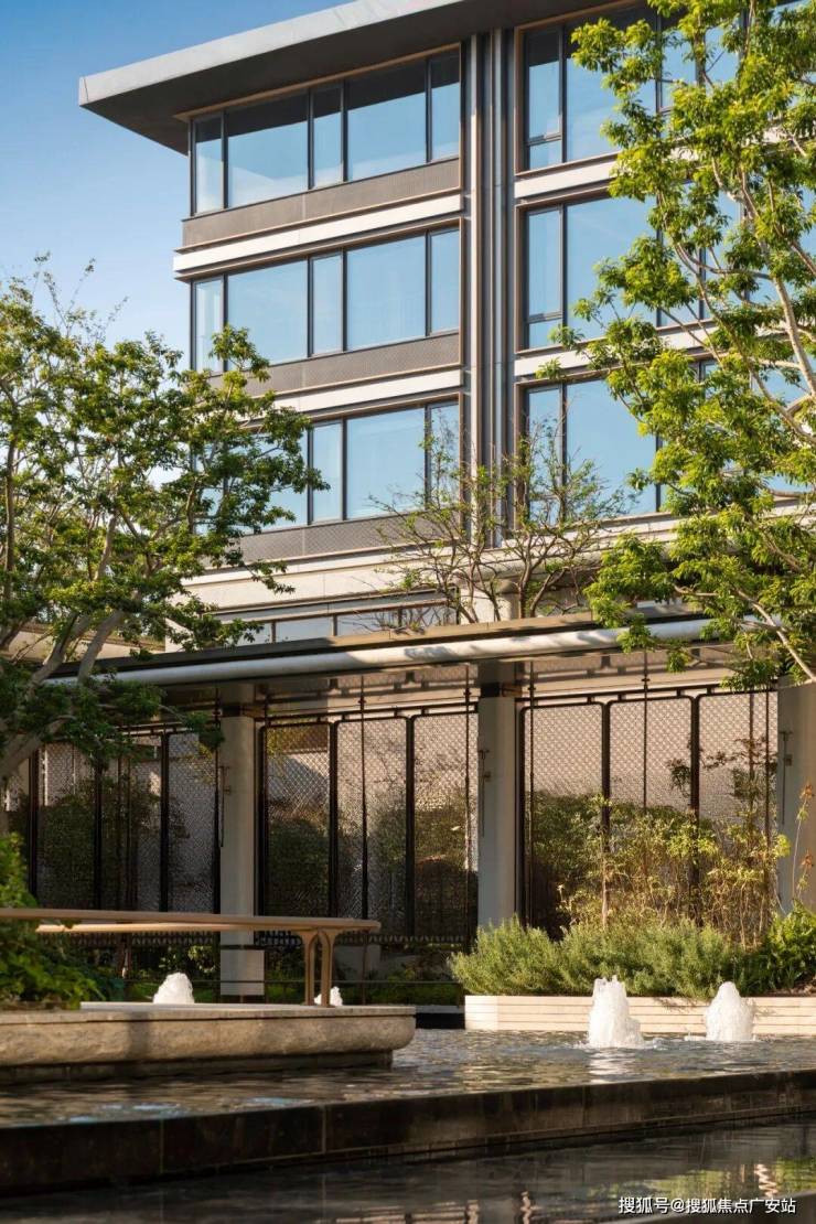 建筑美学上,高区以极简笔触勾勒,超纤细Bezel-less边框、大幅窗墙比与四面铝板公建化立面,彰显力量与序列感;低区基座选用白玫瑰石材,大面积玻璃与金属线条,营造温润亲近的体验。