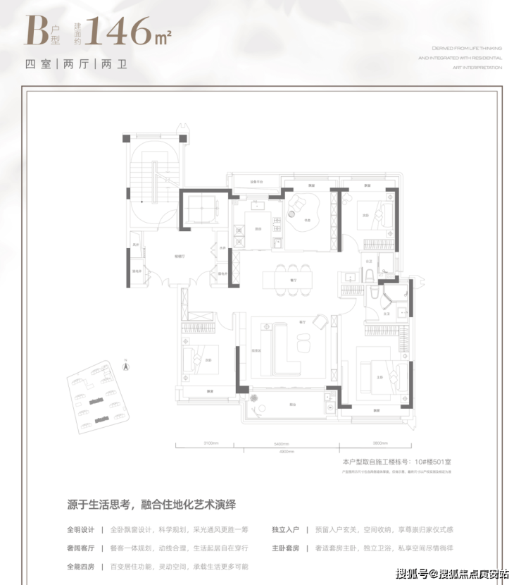 我们再来看一下建面约146㎡的4房: