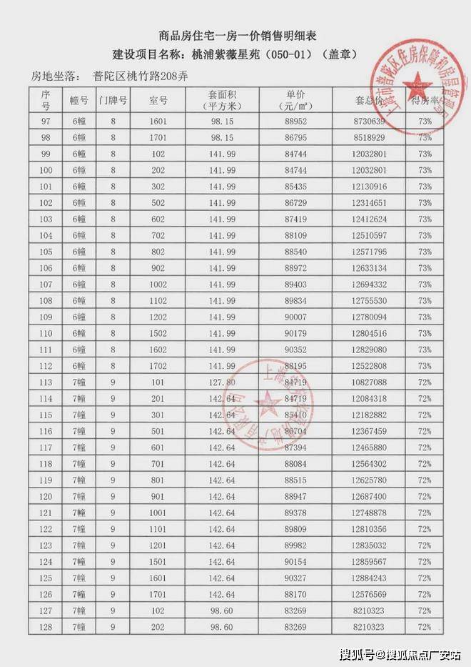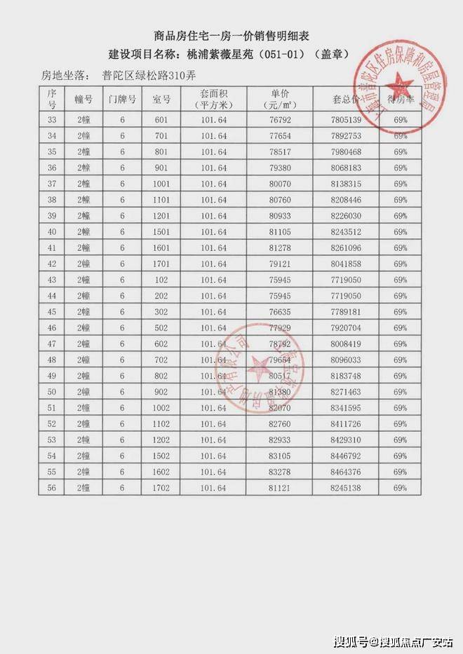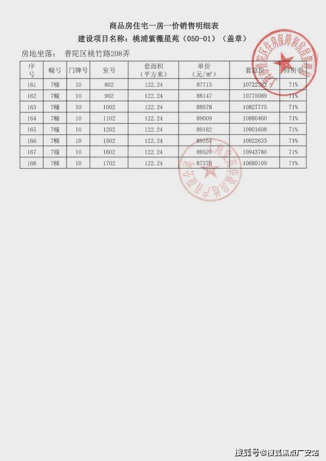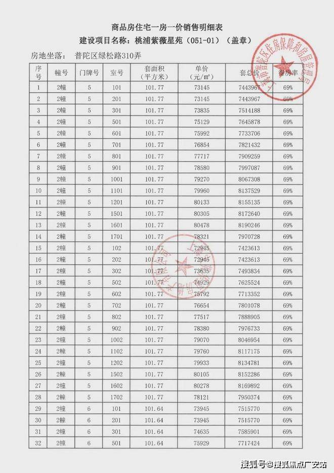 项目一房一价表▼