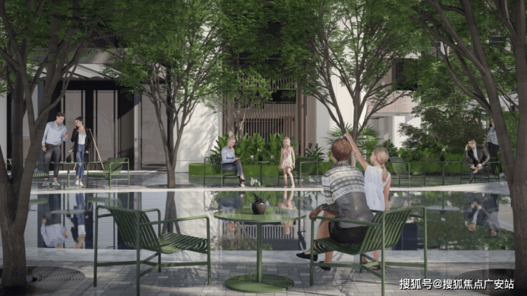 首层花园:森感公园南侧有一个休闲戏水景观,让人彷佛走到欧洲罗马的大广场一样, 气场十足。