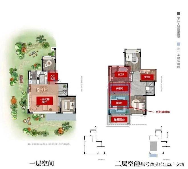 下叠附赠40-300㎡庭院,中叠享约20㎡L型露台,上叠可拓展40-60㎡屋顶花园