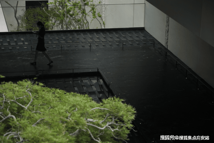 阳光穿过树梢,将斑驳的树影投射在干净的石墙与水面上,随风摇曳,随时间流转。这一刻,景观不再是静止的画面,而是一部关于时间的电影。水的流动、树的呼吸、光的游走,这些细腻的设计细节,让原本高冷的空间有了温度,让每一次驻足,都能感受到自然最本真的呼吸。