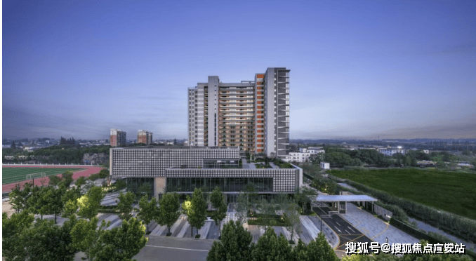 建筑设计:建筑首层局部采用石材、铝板雨棚、金属线条,墙面采用多种颜色涂料、局部金属线条勾勒,整体建筑结构采用中轴对称的方式,顶部采用金属格栅,符合当代年轻人的审美理念。