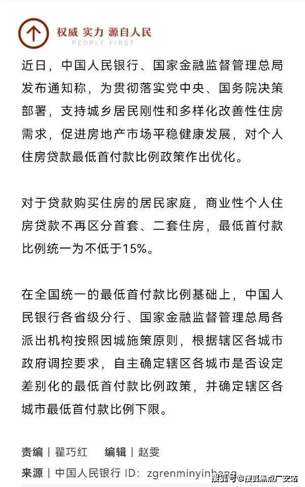 2024年10月9日起,对于贷款购买住房的居民家庭,商业性个人住房贷款不再区分首套、二套住房,最低首付款比例统一为15%。