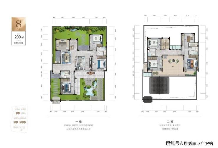 面积:200㎡(七房两厅四卫),赠送120-190㎡花园,毛坯交付,总价700万/套起(均价3.8万/㎡)1114。