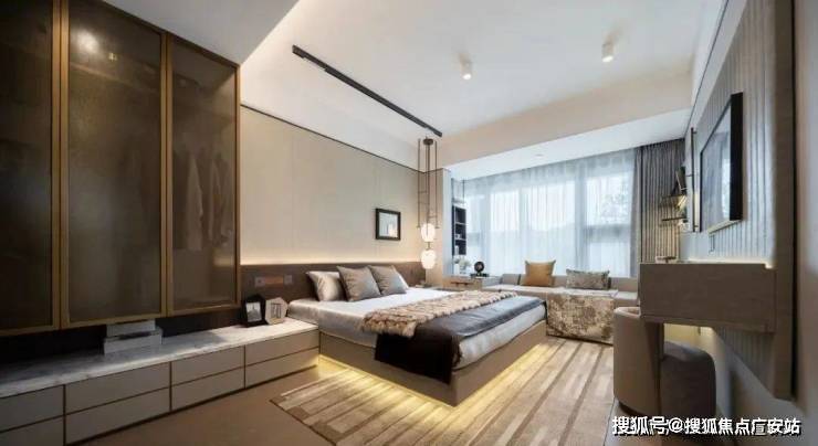 主卧特别打造的假玄关,为每一次归家都增添了一份仪式感,让居住者在踏入家门的那一刻,便能感受到家的温暖与尊贵。浅淡的配色方案,与主卧安静私密的氛围相得益彰,进一步凸显了空间的舒适与宁静。