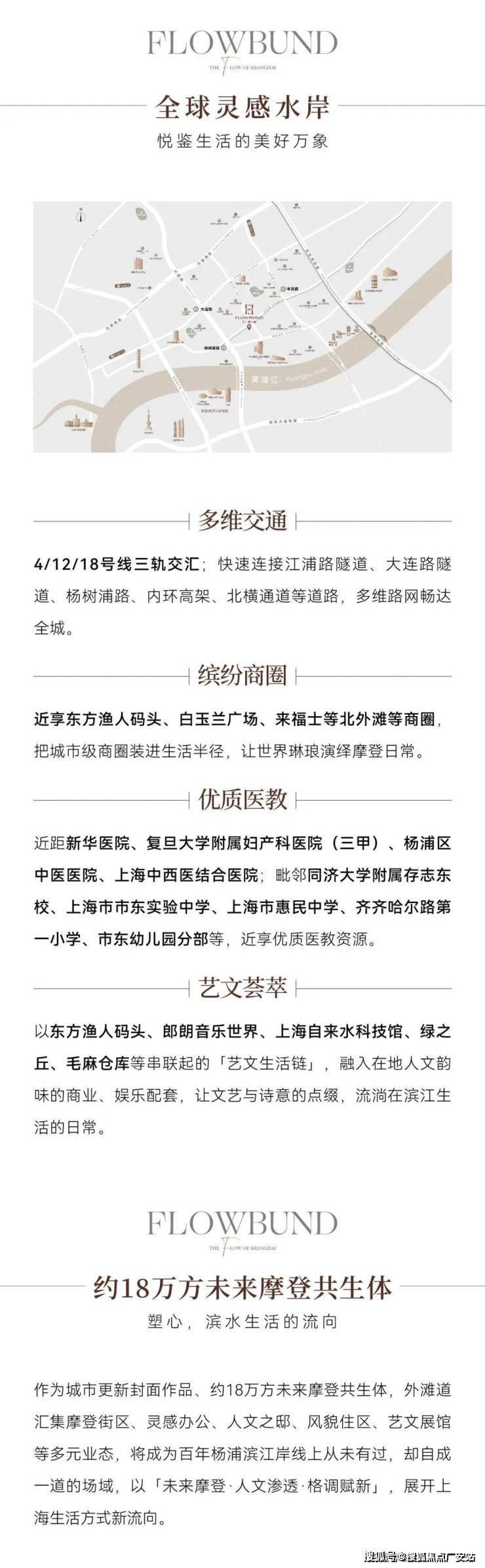 轨交:距4号线杨树浦路站约458米(步行5分钟);距12/18号线平凉路站约730-800米;3站北外滩、5站陆家嘴、7站人民广场。