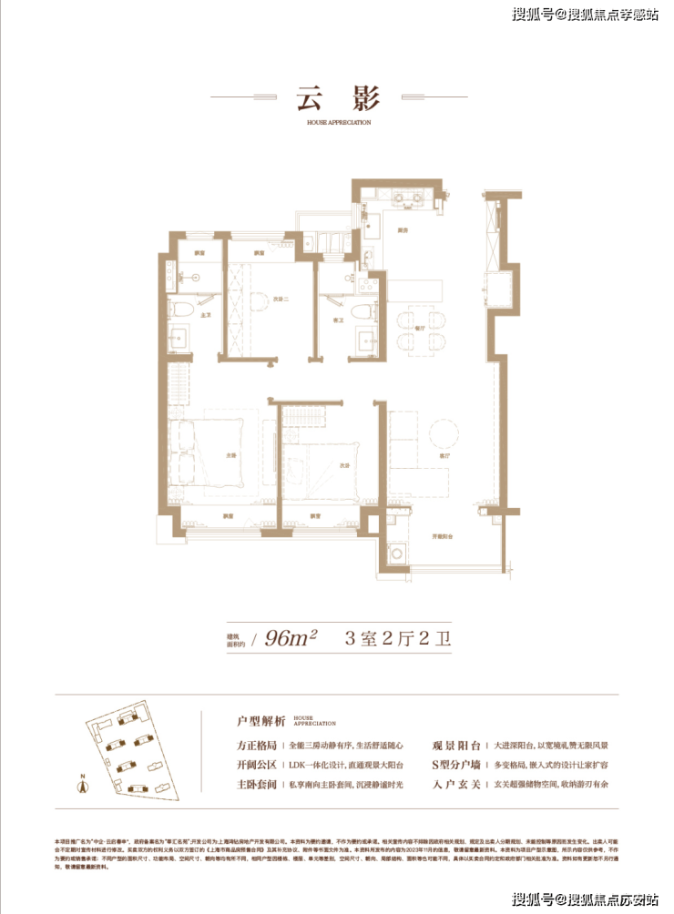 建面约96㎡3房2厅2卫▼