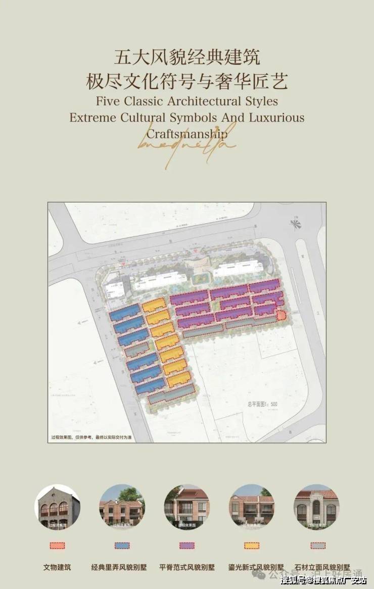 【中建壹品·外滩源著】在整体项目包含高层/风貌别墅,其中别墅延续原生鱼骨巷弄肌理,打造东西两大风貌组团;拓宽里弄的尺度,梳理优化为东西2大组团,感受移步异景的文化意境。
