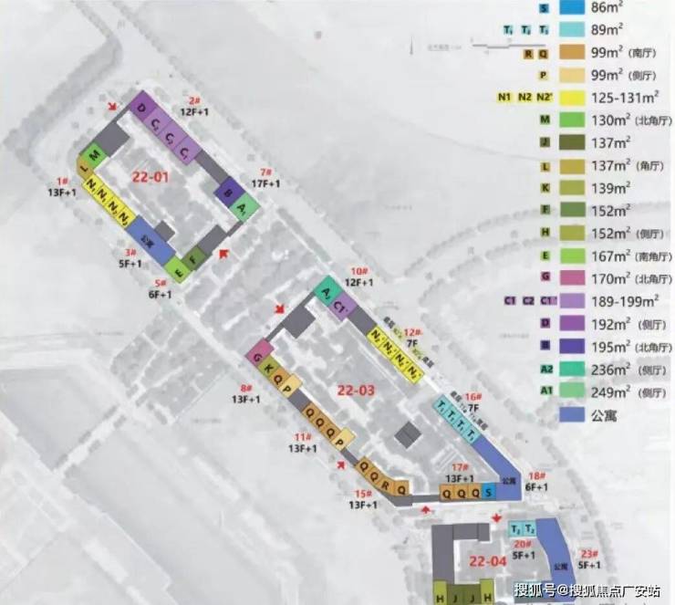 其中:22-01地块占地面积1.1万平方米,总建筑面积5万平方米,包括4栋住宅楼、2栋商业;22-03地块占地面积1.6万平方米,总建筑面积6.7万平方米,包括7栋住宅楼、2栋商业;22-04地块占地面积0.9万平方米,总建筑面积3.8万平方米,包括3栋住宅楼、2栋商业。