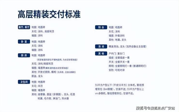 硬装交付:硬装交付就是房子交房时是带装修的,可为业主节省大量的时间和精力,装修做到把地板砖、墙面、房顶,甚至厨房、卫生间的配套都做好,但基本不会配置活动家具家电。