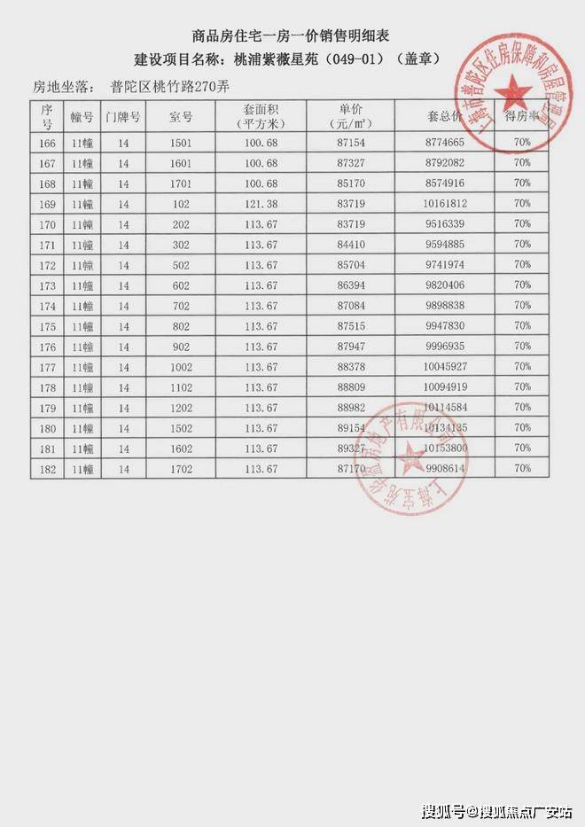 项目一房一价表▼