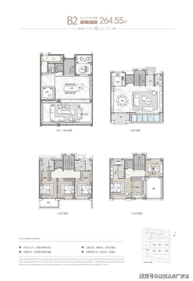 项目主推建面约262-305㎡联排别墅,分为南北入户,均为地上三层,地下两层设计,满足业主们“有天有地有花园”的别墅居住体验!