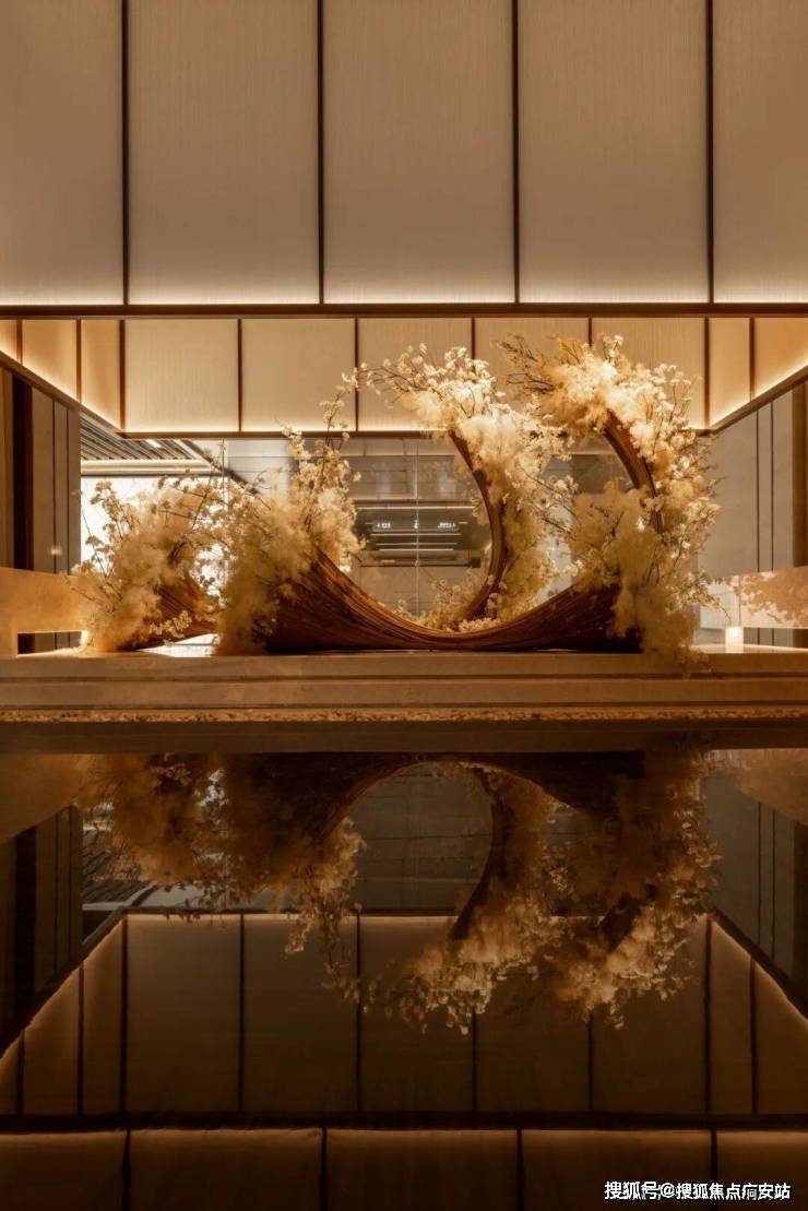 这种对审美的孜孜以求,延续到了约40m长、约4.8m高的大尺度界面门庭。苏州招商序在其设计上采用编织手法打造的“栖心之巢”艺术装置,不仅撑起了「天下四聚」的体面仪式,更升华为一段随着光影延时旋转的温度之旅。