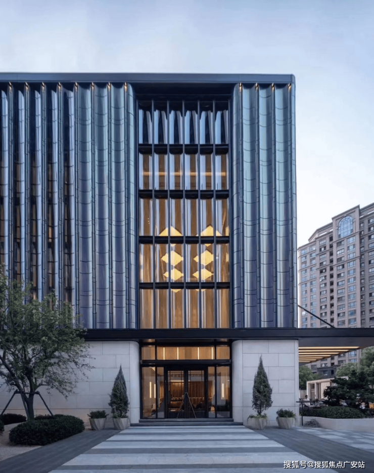 再把目光聚焦回住宅部分,你就会发现,如此热闹的外部配套,只需走回中興傲舍的住宅动线,就能进入到高阶的艺术审美状态。单凭这个门头不说是小区入户,你的想法是什么?