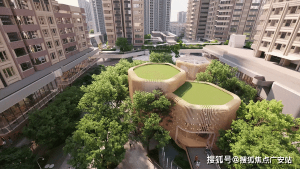 普通人群从地面通过九曲花街到达二层的商业连廊,而业主则独享的一个动线,从社区的高线公园加入楼下的活力商业街区,私密的个人时间与热闹的都市生活可以随切换。