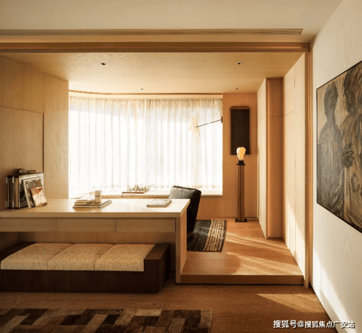 朝南书房配置了专属的观景阳台,弧形阳台将房间的采光面做到了最大。