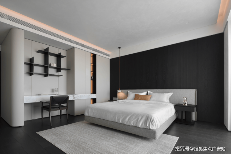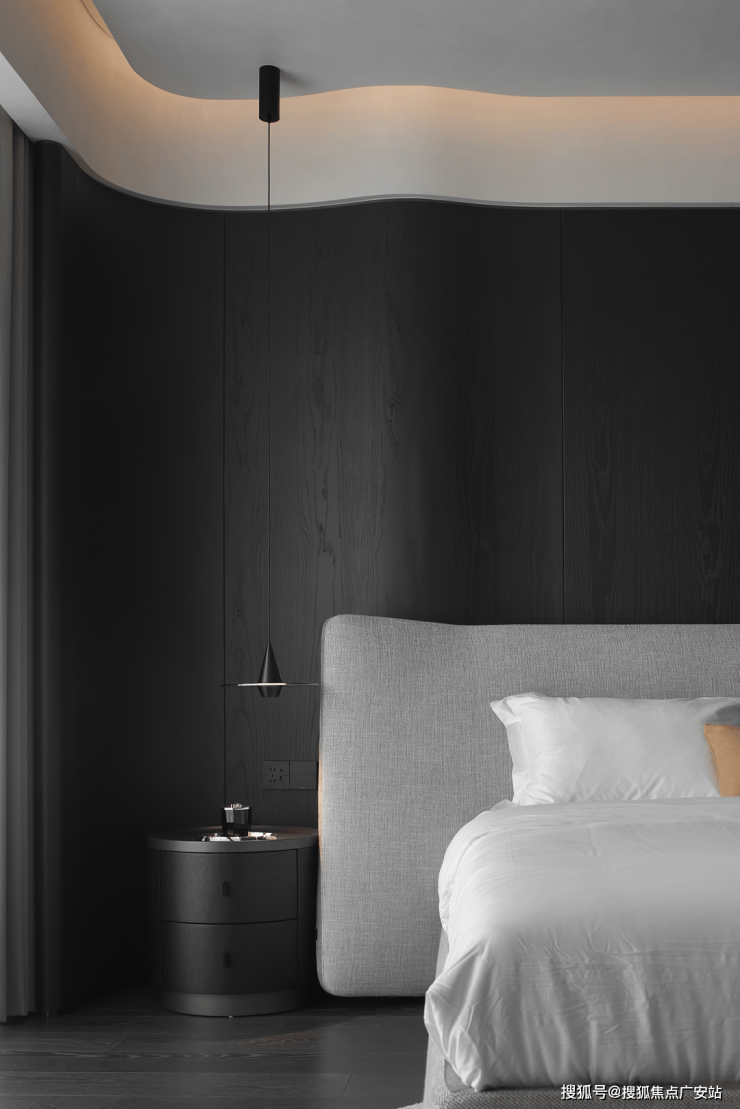 卧室空间更为重视尺度感与氛围的营造,在色彩、灯光及温润材质的互相映衬下,让疲惫的身心得到栖息。