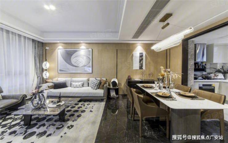 外立面采用玻璃、铝板与石材混搭,联排客厅面宽达8.4米12。