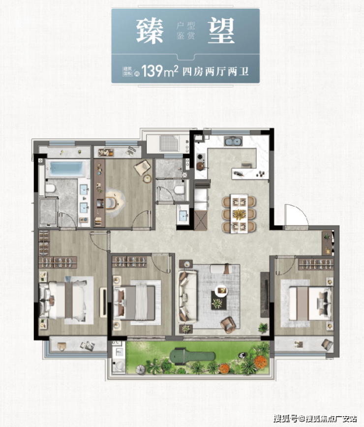 2、户型首次曝光!买房就送露台、大花园!这款180㎡下叠,请盯紧!