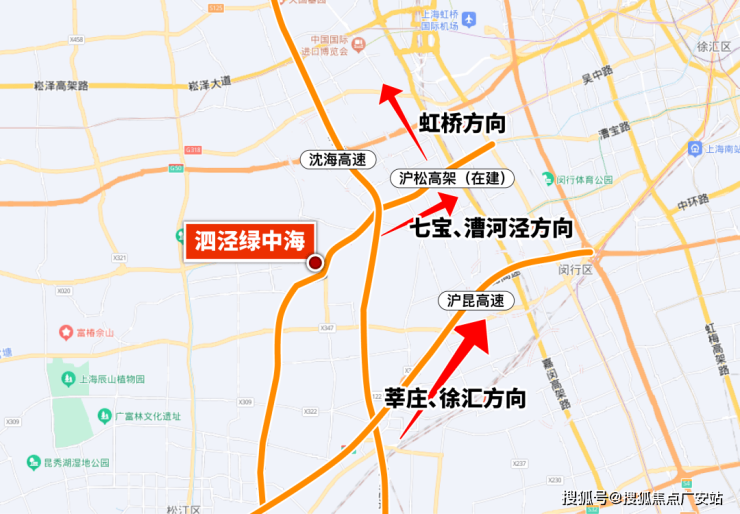 首先,如今泗泾绿中海旁有沈海高速、沪昆高速以及嘉闵高架等线路,从泗泾通往徐家汇、漕河泾以及七宝、莘庄等区域都非常便捷。