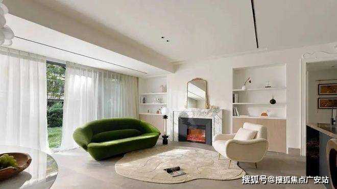 暖白色现代法式客厅,少许经典的法式雕花结合大白墙,打造一个现代法式的空间基调。