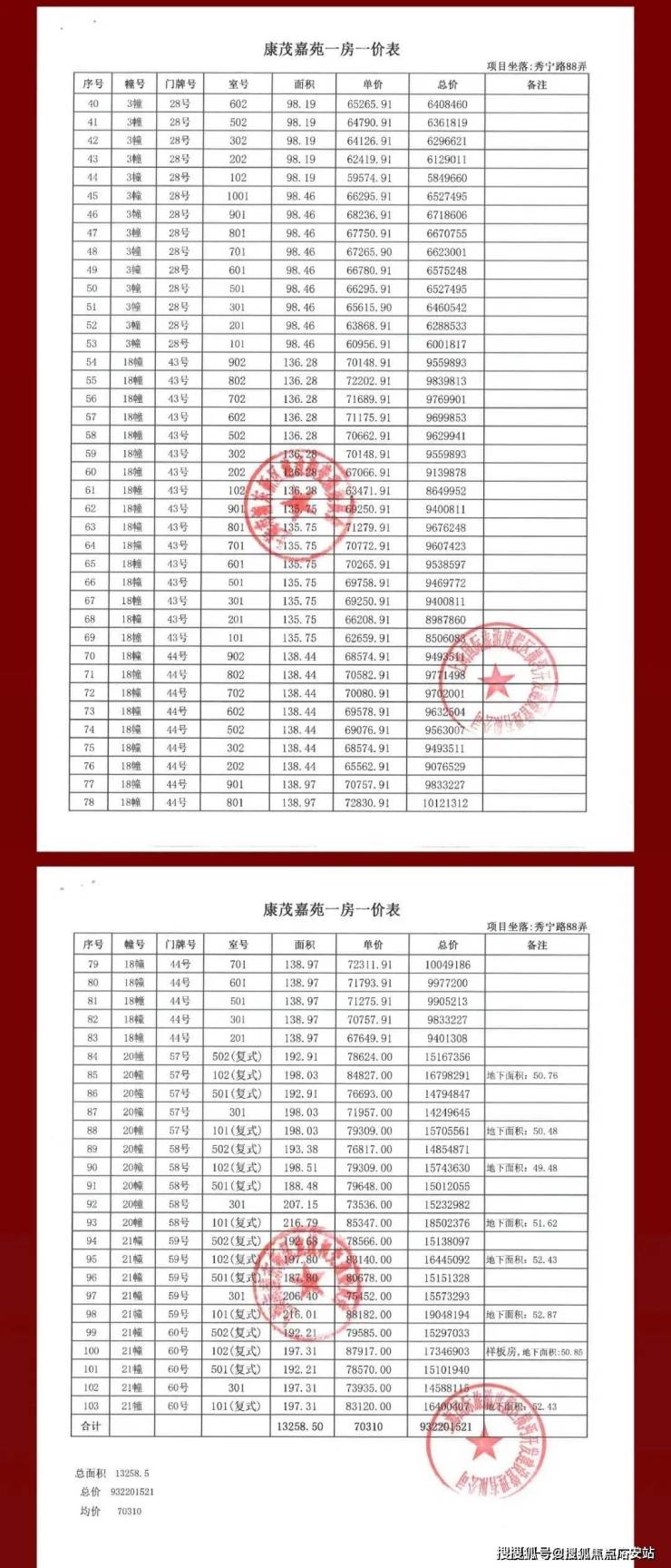 张江金茂府项目一房一价表▼