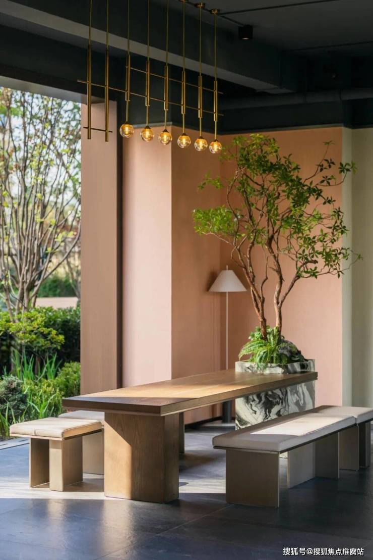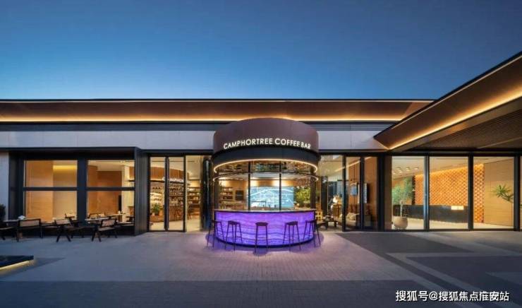 崇璟和颂府以承载城市记忆的百年香樟为情感符号,打造符合当代年轻人“日咖夜酒”的coffee bar作为开放式社区前场。
