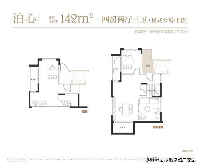 项目叠墅户型有建面约142㎡下叠,建面约139㎡上叠。