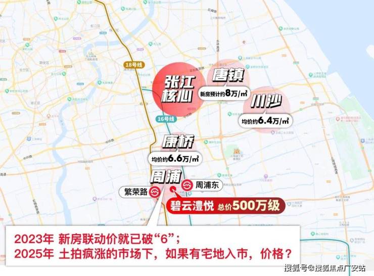 交通方面:距离16号线周浦东站约1.8公里、18号线繁荣路站约2.6公里,算不上名副其实的地铁盘,可借助其他短驳交通工具,通勤到张江、前滩、陆家嘴、人民广场等核心区域还是比较方便的。