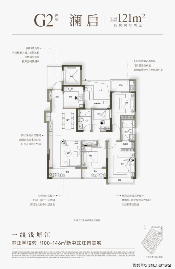 云启钱湾高层分为4种类型,建面约100㎡和建面约121㎡户型,做了创新S墙设计,提高了空间利用率,对年轻家庭来说,也是非常友好的。建面约146㎡四房户型,全部南向面江,大部分楼层还可看到一线江景。