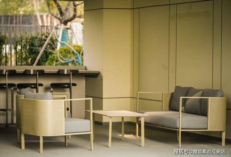 休闲空间座椅的色调、材质的选择不仅是建筑与自然的过渡区域,也是彰显建筑个性、提升空间质感的重要一环。空间通过桌椅以铝合金+藤编+户外布的精妙组合,完美融合实用功能与美学艺术,赋予空间独特魅力与舒适氛围。