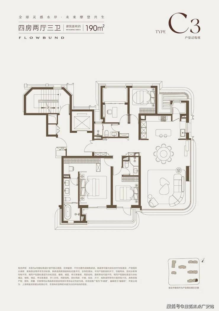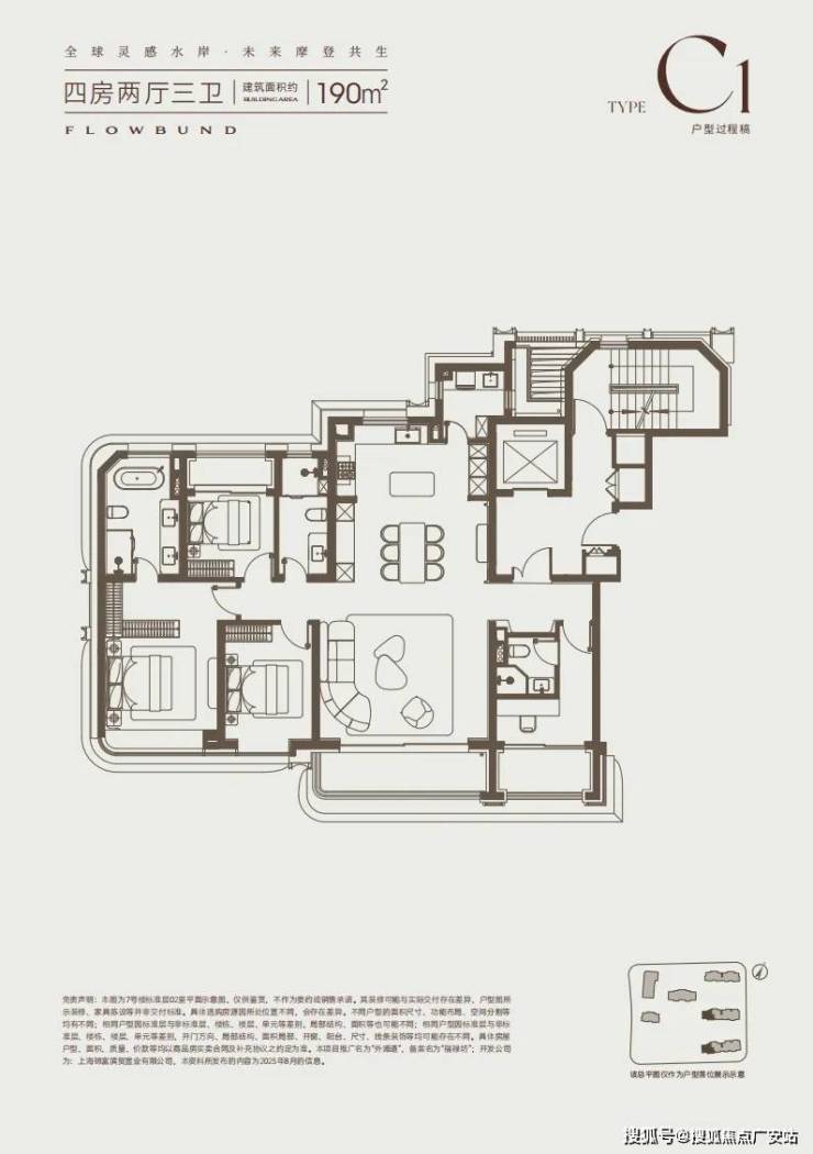改善家庭的理想之选约190㎡四居,东边套主打270° 全景视野,客餐厅采用弧形玻璃幕墙环绕,东侧可远眺黄浦江景,北侧可俯瞰社区下沉式庭院,景观视野堪称极致