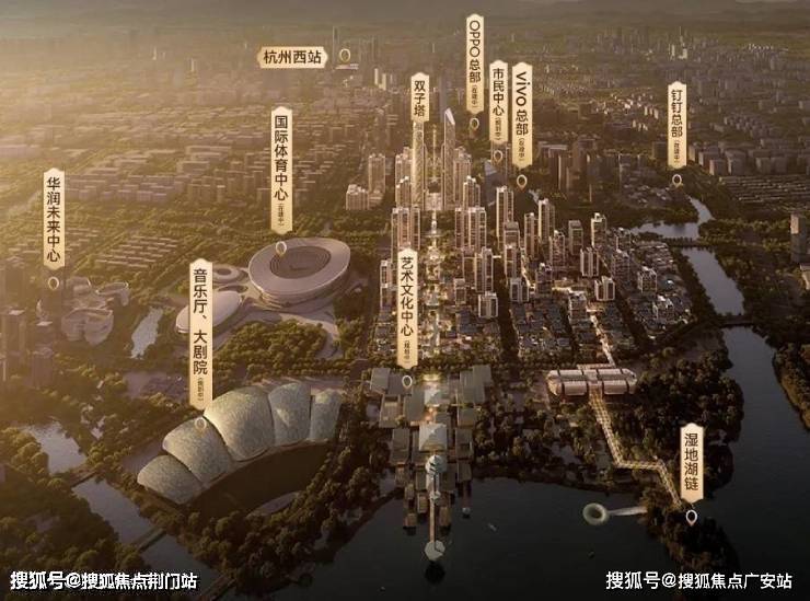 边上有市民中心、国际体育中心、艺术文化中心、音乐厅、科技馆、大剧院、OPPO移动终端研发总部、字节跳动华东中心、vivo全球AI研发中心钉钉全球总部、阿里巴巴等。
