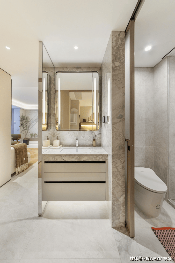 The bathroom is even equipped with a beauty refrigerator and a Grohe (or a similar brand) showerhead. The master bathroom is equipped with a Panasonic (or a similar brand) smart all-in-one toilet.