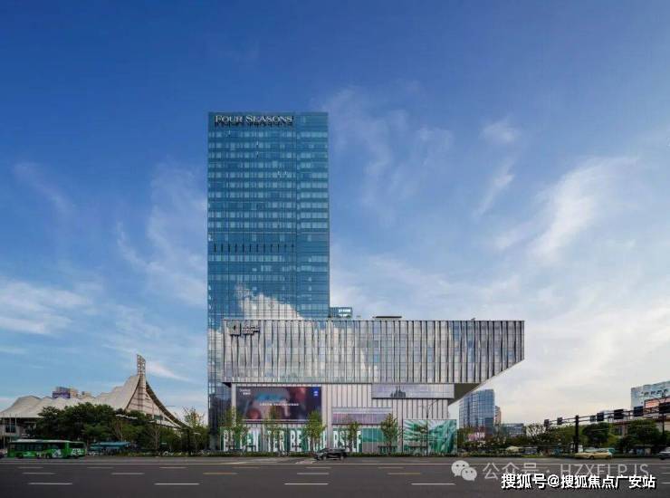 外立面设计:元起观潮府的外立面采用现代简约风格,以玻璃幕墙和金属线条为主色调,展现出建筑的现代感与科技感。外立面的线条流畅,结构清晰,与周边环境和谐共融。英文翻译:The exterior design of Yuanqi Guanchaofu adopts a modern minimalist style, with glass curtain walls and metal lines as the main colors, showcasing the building's modernity and technological sophistication. The exterior lines are smooth, and the structure is clear, harmonizing with the surrounding environment.