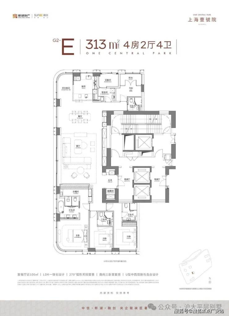 超80%的得房率,LDK一体化厅+西厨岛台,L型大面积转角落地窗,呈现出270度的幕布视野,这个王者公区的尺度不到现场来看,根本是你想象不到的震撼!