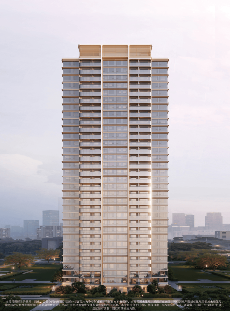 香槟金色格栅塔冠与壁柱形成的形制立面,完美演绎“玺”系基因的精髓,尽显低调奢华的气质。