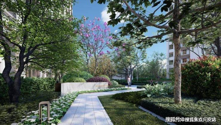 社区内打造 “一带、一核、双轴、六重归家空间”的景观布局,整体景观内外交融,一步一景,充分考虑全龄段的居住需求,让休闲、运动、景观紧密结合。