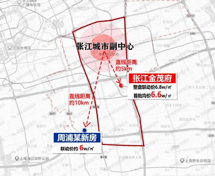 「张江金茂府」距离张江核芯仅约5km,坐拥张江前排置业地理位置,与周浦某些新房相比,不仅距离优势明显,价差也不明显,基本属于同总价段。
