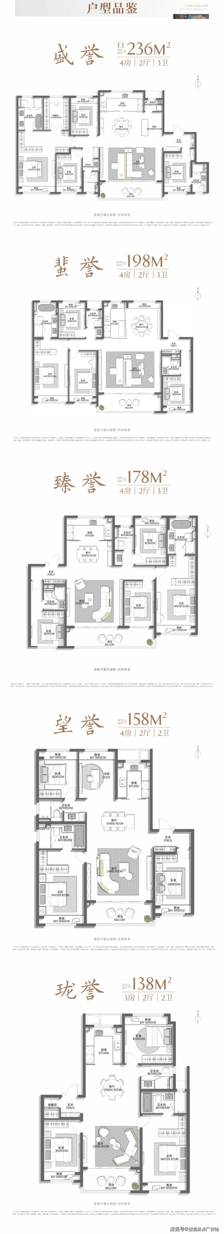 户型配比:建面约158㎡、198㎡、228㎡