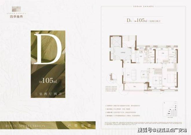 我们重点来看主力的建面约105㎡3房2卫户型: