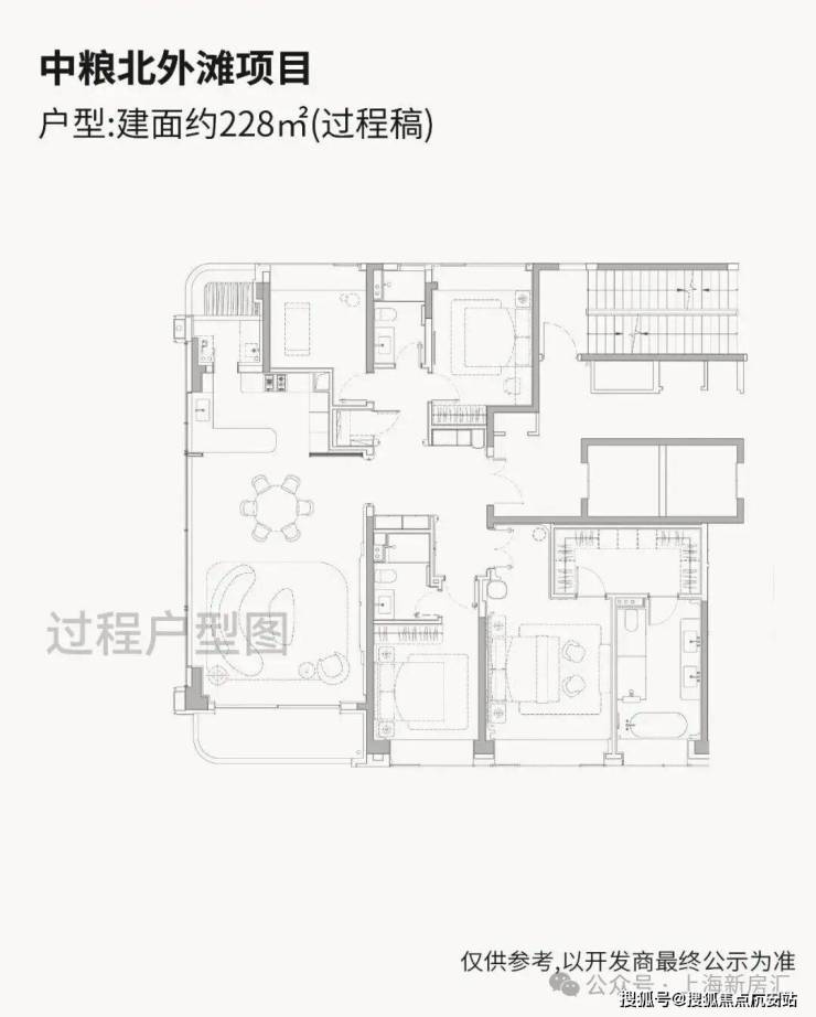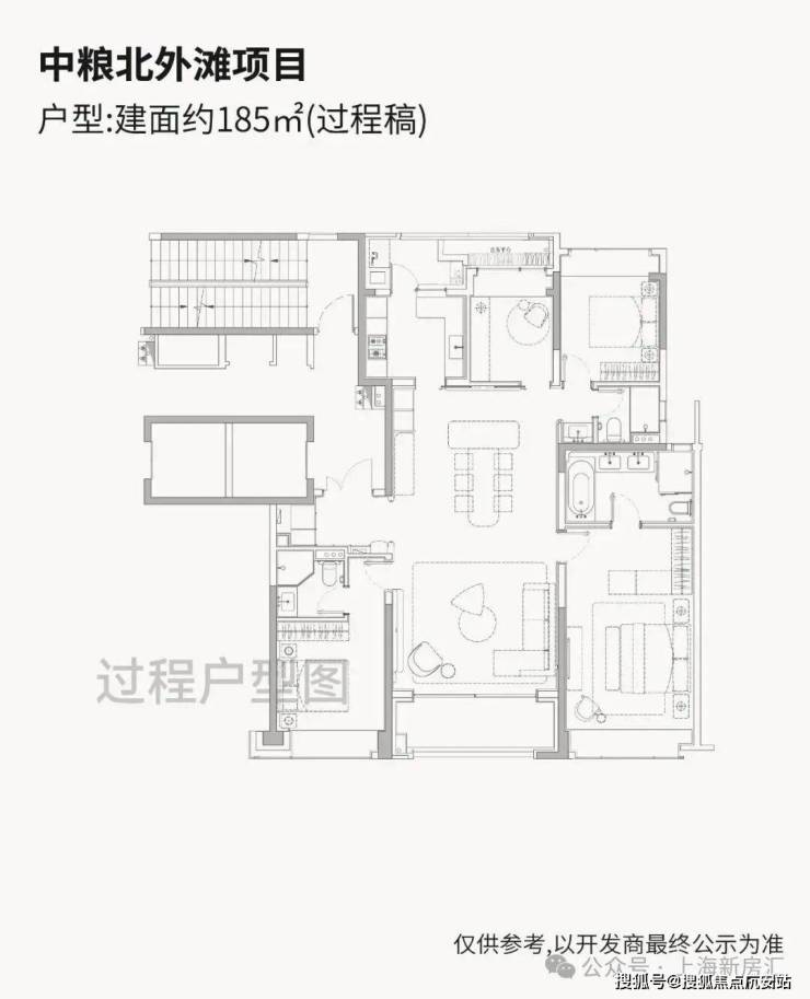 「中粮·北外滩壹号」即将入市的高层户型建面约185-228㎡纯粹4房,尺度感相当奢阔!高层户型均为两梯两户独立电梯厅配置,隐私性与尊崇感拉满!全落地窗设计,270°环幕大边厅户型相当惊艳!超大窗墙比+双套房格局形成多维观景的极致效果!仅90套,珍藏属性拉满!